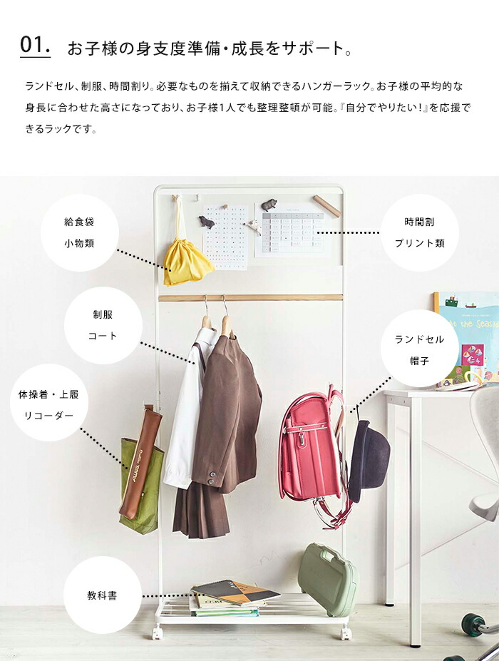 本店は キッズハンガーラック Smart スマート ハンガーラック ホワイト ブラック 5187 51 キッズ 子供 収納 制服 ランドセルラック ポールハンガー キャスター 衣類 おしゃれ 白 黒 シンプル 子供部屋 スチール収納 服 収納ラック 物置 棚付き 子供用 山崎実業 日本製